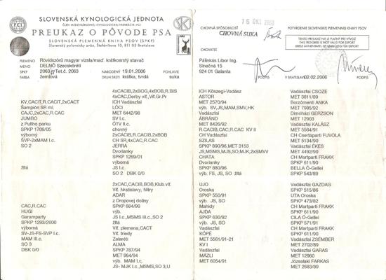 Chovná suka DELNÖ Szecskőréti (CH SR)