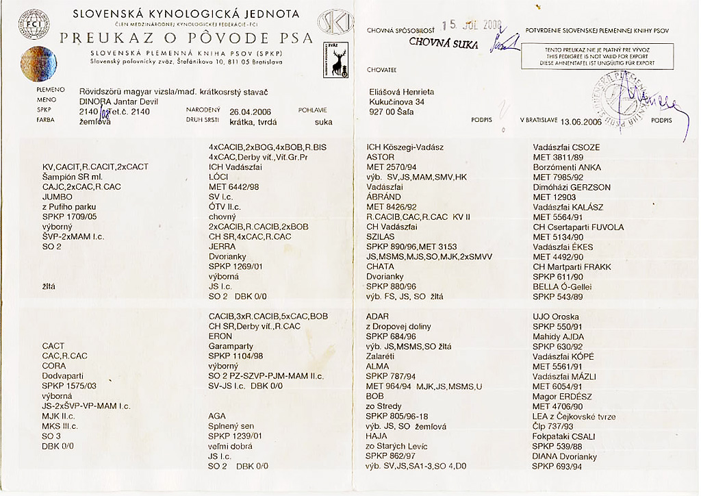 Chovná suka DINORA Jantar Devil